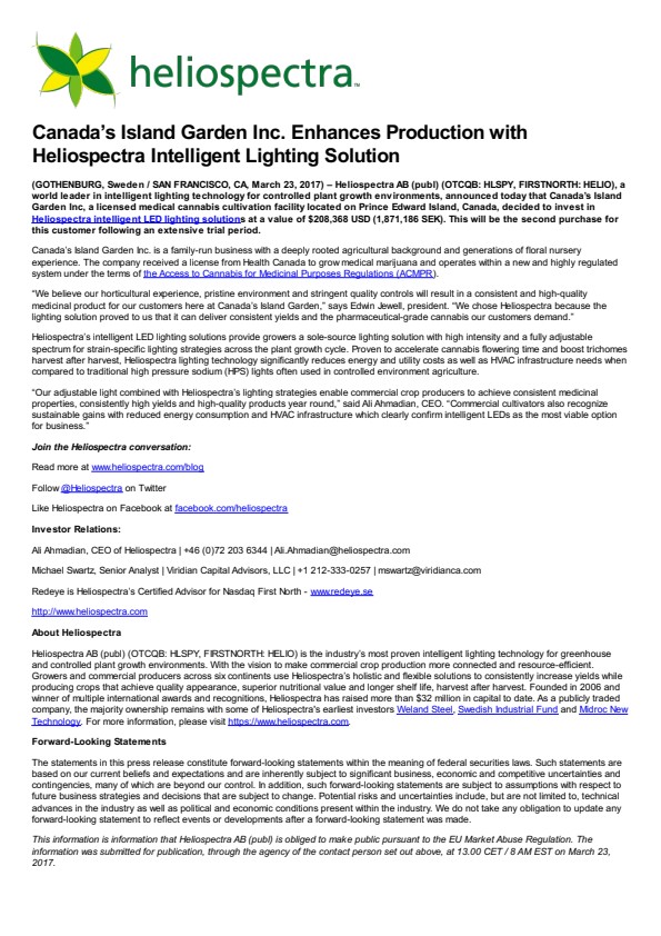 Like Heliospectra on Facebook at facebook.com/heliospectra