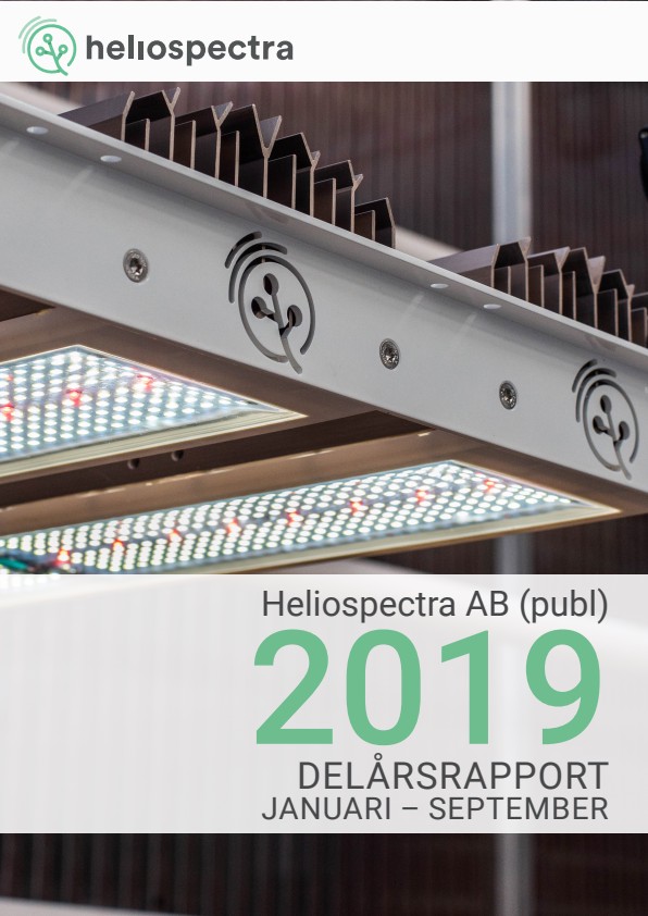 lösningar. Forskningsbolaget expanderar sin växthusproduktion och har lagt en order på Heliospectras kontrollerbara ELIXIA LED-belysningslösning. Värdet på ordern är 2,0 miljoner kronor (189 000 EUR).