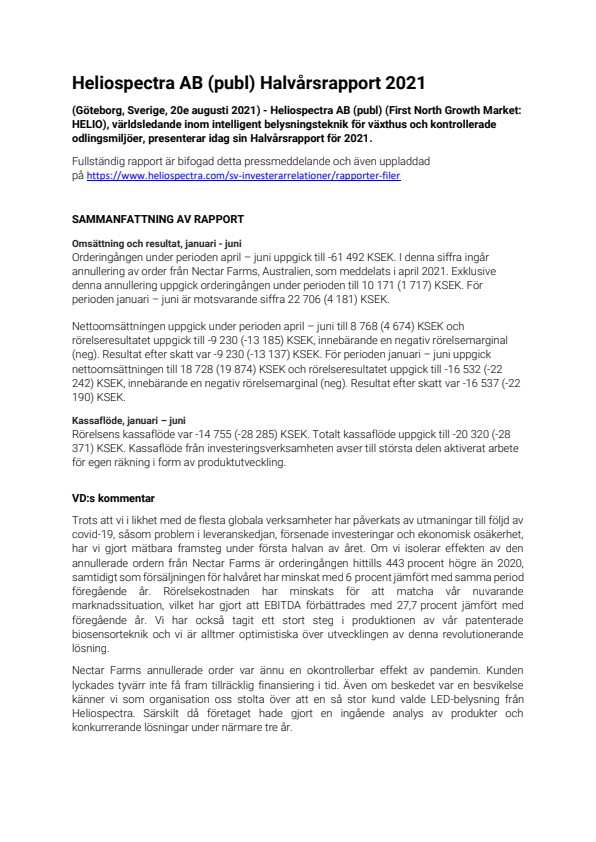 Fullständig rapport är bifogad detta pressmeddelande och även uppladdad på https://www.heliospectra.com/sv-investerarrelationer/rapporter-filer