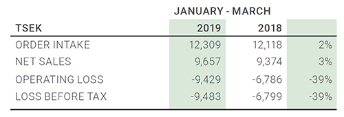 Order intake amounted to SEK 12,309 (12,118) thousand