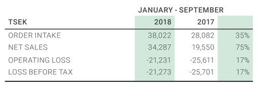 - Profit/loss after tax was SEK -21,273 (-25,701) thousand or SEK -0,61 (-0,73) per share