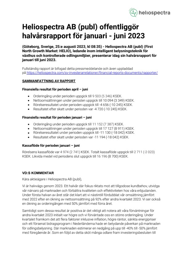 Fullständig rapport är bifogad detta pressmeddelande och även uppladdad på https://heliospectra.com/sv-investerarrelationer/financial-reports-documents/rapporter/
