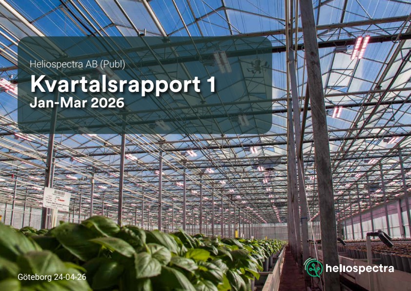 (Göteborg, Sverige, 24:e april 2026, kl 08:40 CET) – Heliospectra AB (publ) (First North Growth Market: HELIO), ledande inom intelligent belysningsteknik för växthus och kontrollerade odlingsmiljöer, presenterar idag sin Kvartalsrapport för perioden januari till mars 2026.