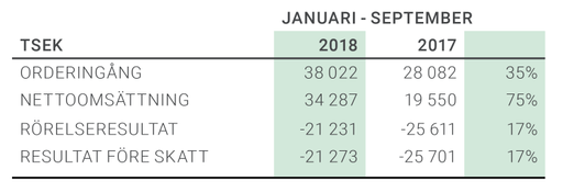 Vi uppnådde under perioden nytt försäljningsrekord med en ökad nettoomsättning på 75% jämfört med året innan samt ökade orderingången med 35%. Allteftersom vårt företag utvecklas attraherar vi allt större kunder. Detta kräver att vi är utrustade med leverantörer som kan leverera större volymer mer effektivt. När vi nu går in i Q4 färdigställer vi vår övergång till en kontraktstillverkare i norra Europa. En partner som säkerställer större volymer med skalbar produktionskapacitet i Sverige. En förändring av denna kritiska natur tar tid att genomföra, speciellt då vi vill säkerställa en hög kvalitet och undvika förseningar för att på så sätt göra det smidigt för våra kunder.