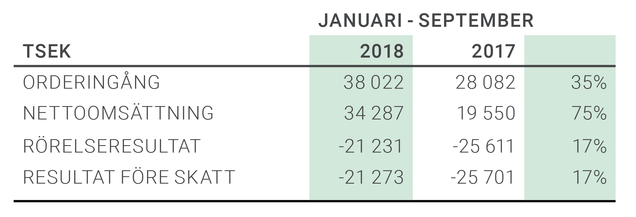Vi uppnådde under perioden nytt försäljningsrekord med en ökad nettoomsättning på 75% jämfört med året innan samt ökade orderingången med 35%. Allteftersom vårt företag utvecklas attraherar vi allt större kunder. Detta kräver att vi är utrustade med leverantörer som kan leverera större volymer mer effektivt. När vi nu går in i Q4 färdigställer vi vår övergång till en kontraktstillverkare i norra Europa. En partner som säkerställer större volymer med skalbar produktionskapacitet i Sverige. En förändring av denna kritiska natur tar tid att genomföra, speciellt då vi vill säkerställa en hög kvalitet och undvika förseningar för att på så sätt göra det smidigt för våra kunder.