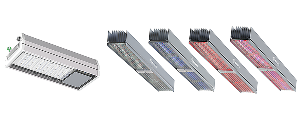 Multi-channel LED fixtures are lighting systems that contain multiple, independently controllable light channels. Each channel can emit specific wavelengths of light, such as red, blue, white, and far-red, but can also contain a combination of colors, such as R5/B5/R90. These different configurations allow growers to fine-tune the light spectrum to the needs of different crops and growth stages. In addition, multi-channel fixtures offer the flexibility to easily adapt to different crops as needed. For example, young plant growers can seamlessly switch between the specific light requirements and growth strategies of tomato plants and cucumber plants.